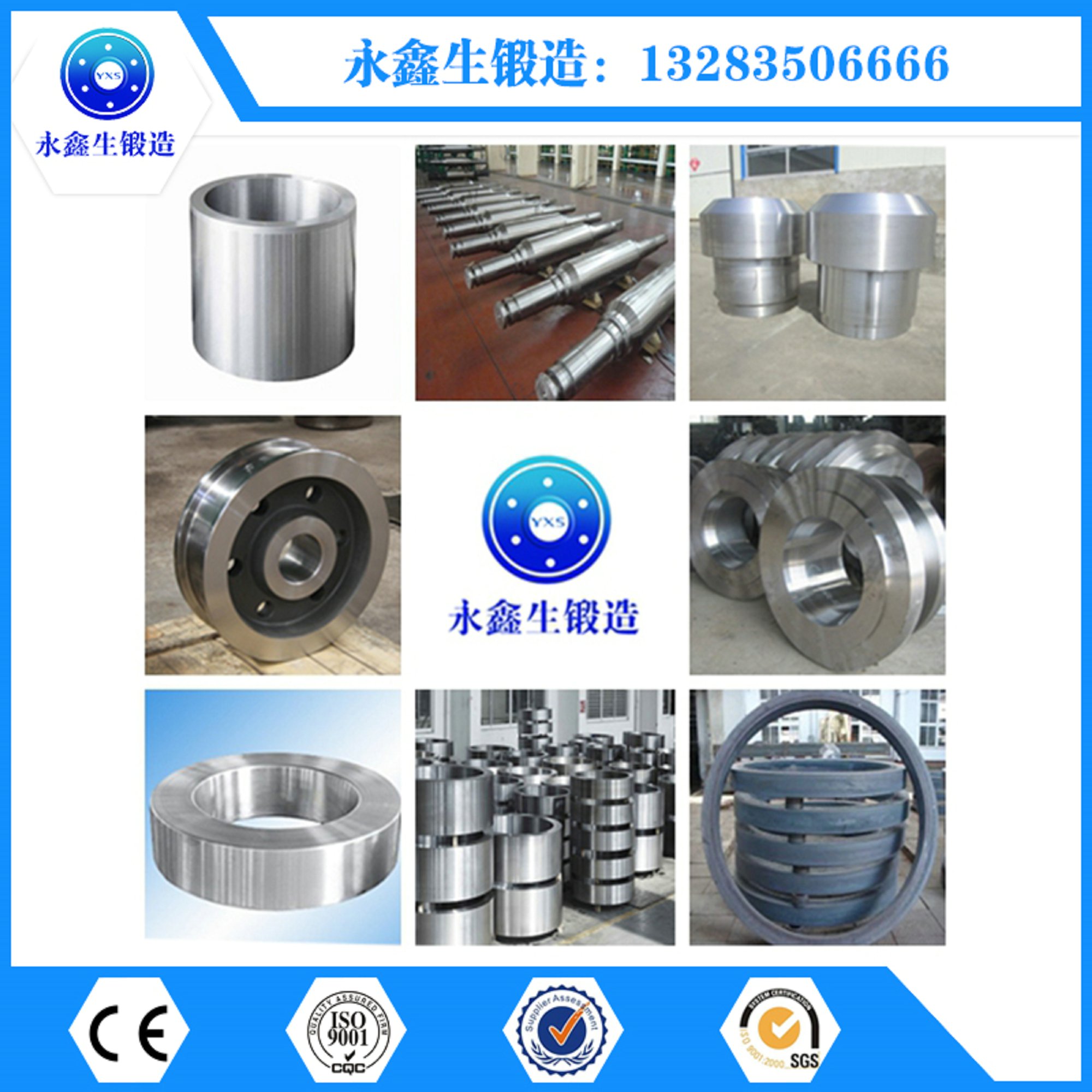20CrMnTi鍛件  山西永鑫生鍛造有限公司位于中國能源重化工基地山西省西北部鍛造之鄉定襄境內,已有30年鍛造經驗,認真做事,用心服務。專注大型鍛件,長期與起重機、軍工、港機、液壓、鋼廠、冶金、焦化、機車、礦山、火車、岸橋、橋吊、卸船機、堆取垛料機、攔推焦機、熄焦機、挖掘機、工程機械等國內外企業配套生產 車輪、滑輪、鏈輪、天車輪、行車輪、輪箍、模塊、齒輪、齒圈、挖掘機底座、中心支撐座、活塞桿、行車大輪、鋼包車車輪、底座、缸體、軸套、環形鍛件、軸類、筒類、異形件等鍛件. 產品均可自由鍛造、模鍛、熱處理、精加工、成品交貨。